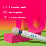Small enough for travel yet powerful enough to be your go-to pleasure partner, the Magic Wand Mini offers up to 2.5 hours of cordless use on a single charge. Three intensity levels are controlled by intuitive buttons, giving you complete control over your experience.