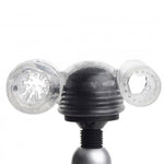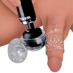 Soyez aventureux avec cet accessoire bidirectionnel, transformant votre baguette en un jouet sexuel masculin à double usage. Enfilez facilement cet accessoire bien ajusté sur la tête d'un vibromasseur baguette de taille standard et profitez de deux masturbateurs texturés pour une stimulation palpitante. Le masturbateur à extrémité fermée titille la tête du pénis avec des vrilles douces, tandis que le masturbateur à extrémité ouverte caresse toute la tige avec des picots stimulants. Libérez la puissance de votre masseur et profitez du plaisir en solo ou avec un partenaire. Fabriqué en TPE sans phtalate, cet outil de plaisir est compatible avec le silicone et le lubrifiant à base d'eau.