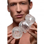 Soyez aventureux avec cet accessoire bidirectionnel, transformant votre baguette en un jouet sexuel masculin à double usage. Enfilez facilement cet accessoire bien ajusté sur la tête d'un vibromasseur baguette de taille standard et profitez de deux masturbateurs texturés pour une stimulation palpitante. Le masturbateur à extrémité fermée titille la tête du pénis avec des vrilles douces, tandis que le masturbateur à extrémité ouverte caresse toute la tige avec des picots stimulants. Libérez la puissance de votre masseur et profitez du plaisir en solo ou avec un partenaire. Fabriqué en TPE sans phtalate, cet outil de plaisir est compatible avec le...